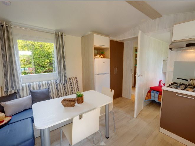 - De tweede slaapkamer is voorzien van twee bedden van 80 cm X 190 cm en een derde bed van 70 cm X 190 cm (opklapbaar).