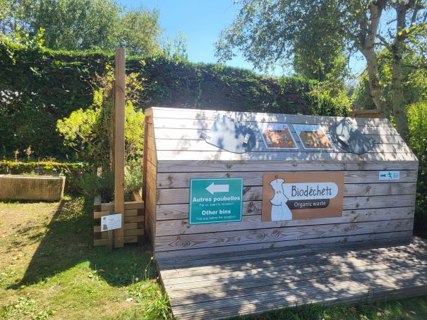 Er is een compostbak geïnstalleerd bij sanitairgebouw 2. In overeenstemming met de normen voor het recyclen van organisch afval, kunt u hier al uw fruit- en groenteafval, schillen, eierschalen, koffiedik (met filter), theezakjes (zonder karton), rijst, noten, enz. deponeren. Aarzel niet om ons team bij de receptie te raadplegen als u vragen heeft over wat er in de compostbak mag.
